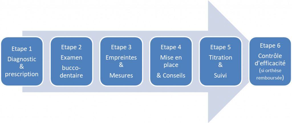 - Un enregistrement de sommeil de contrôle avec l’orthèse doit être réalisé dans un délai de 3 mois afin de confirmer l’efficacité du traitement.